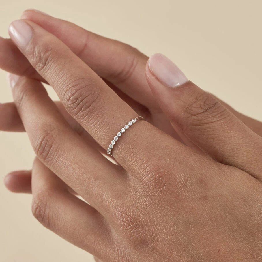 Bague, en argent véritable, montée d’une fleur d’oxyde de zirconium dont le pourtour est réalisé avec un fin graineti