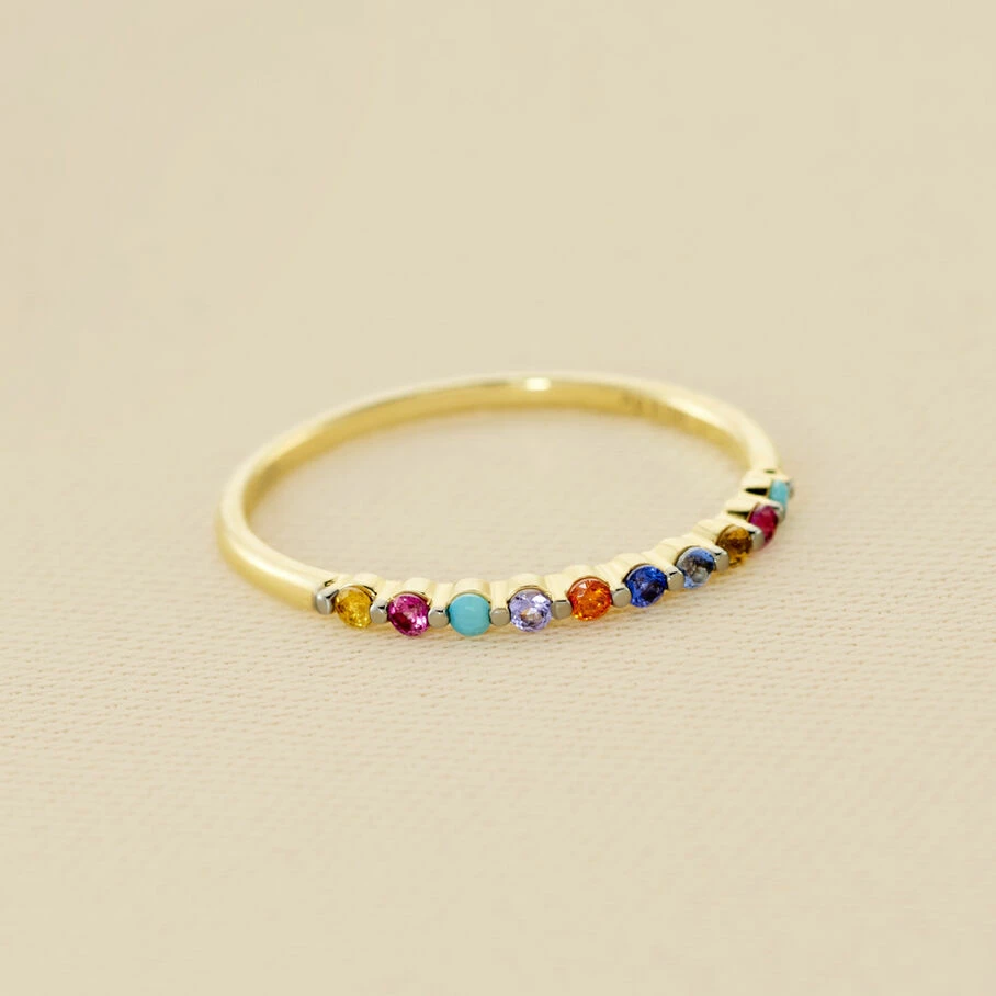 Bague, en argent plaqué or, sur laquelle ont été sertis clos une série d’oxydes de zirconium