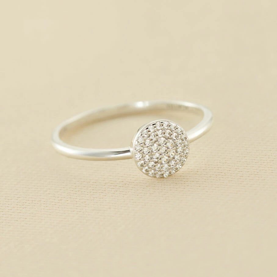 Bague en argent véritable ornée d’une pastille pavée d’oxydes de zirconium