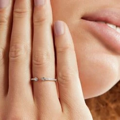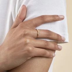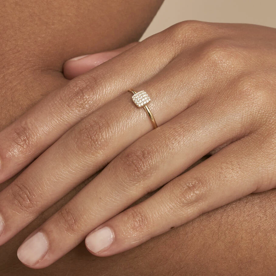 Bague fine, en argent véritable avec une couche d’or, avec un ornement de forme coussin et pavé d’oxydes de zirconium