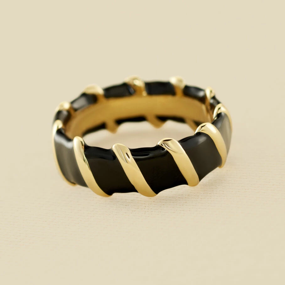 Bague, en laiton doré 750/1000, effet torsadé en émail
