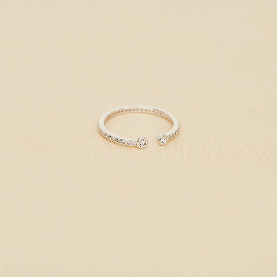 Bague fine ouverte en argent véritable pavée d’oxydes de zirconium et et ornée de deux oxydes sertis aux extrémités