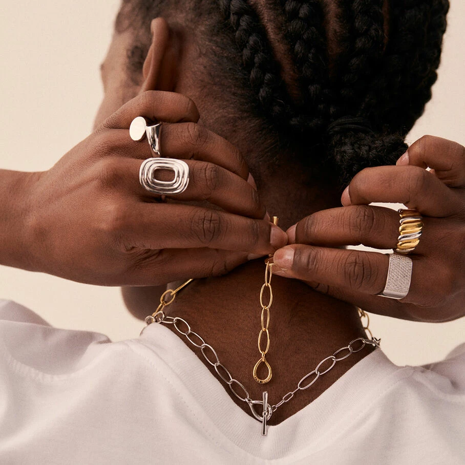 Bague toi& moi, en argent véritable, avec des extrémités planes. Un design qui donnera du volume à vos mains !