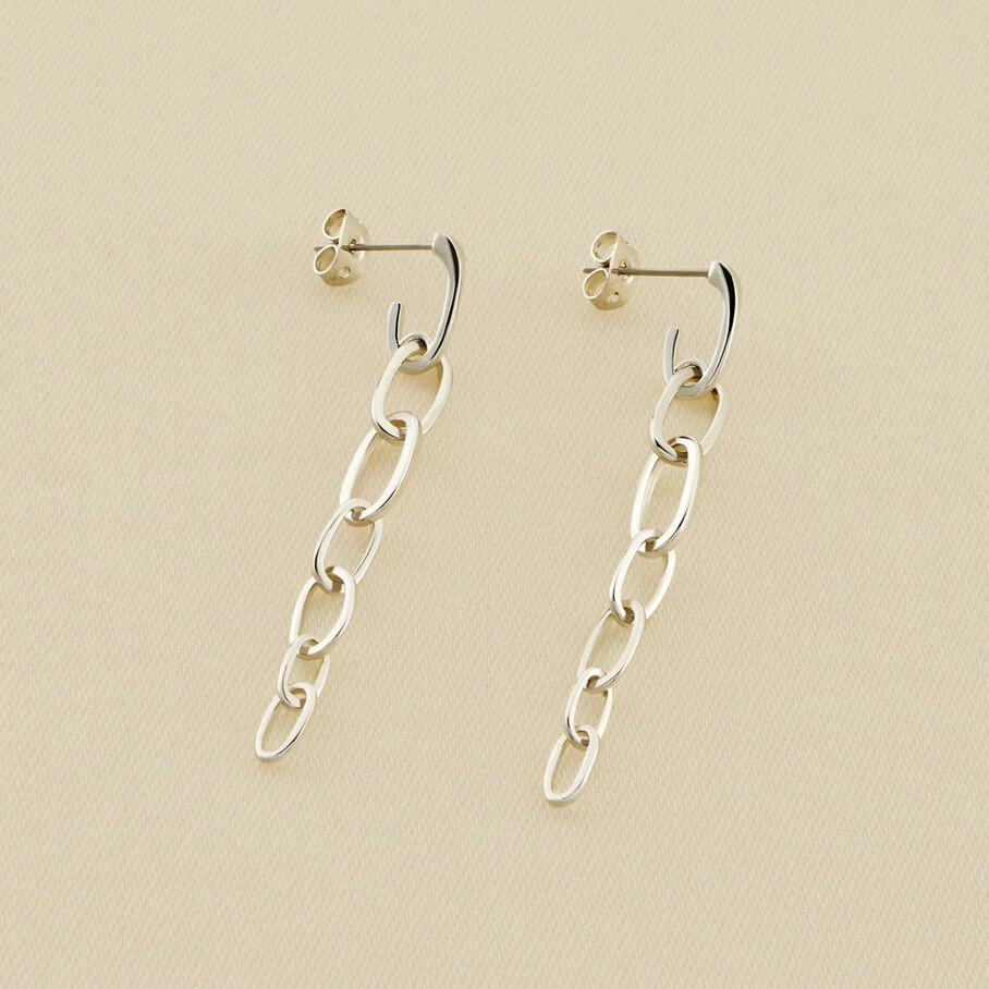 Boucles d’oreilles linéaires, en laiton rhodié, faites de maillons allongés et ovales