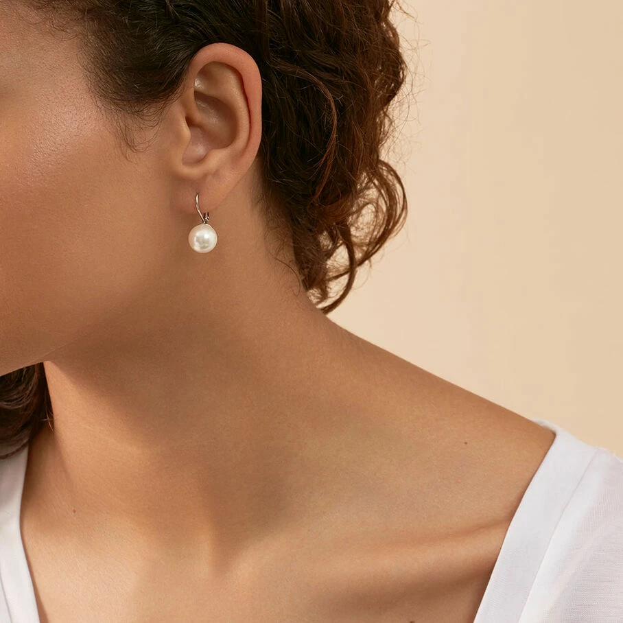 Boucles d’oreilles dormeuses en argent véritablec ornées de perles de verre de 10 mm de diamètre