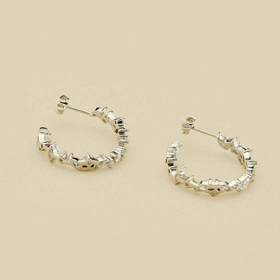 Créoles de 20mm de diamètre, en argent véritable, serties d’oxydes de zirconium et d’oxydes en forme marquise