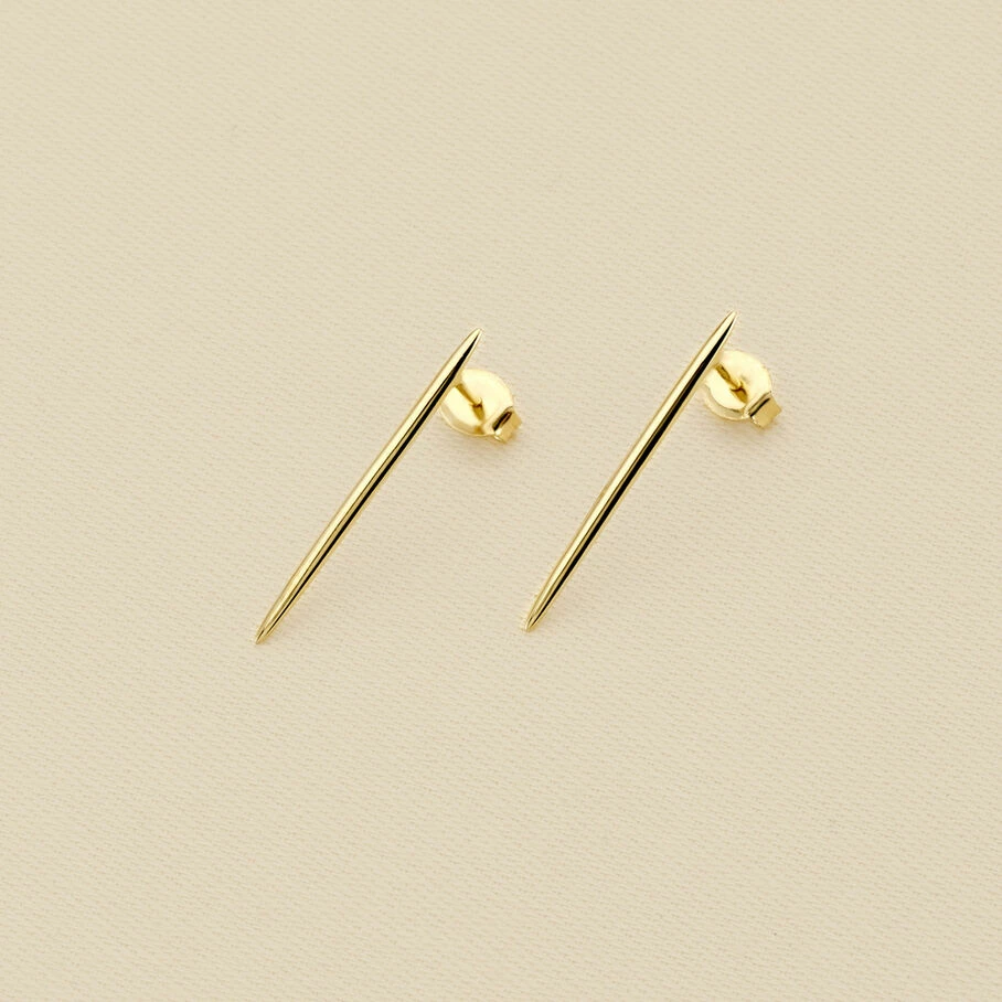 Boucles d’oreilles linéaires, en argent véritable 925/1000 et dorées 750/1000, au motif rayon de soleil.