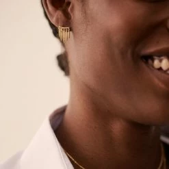 Boucles d’oreilles puces, en argent véritable 925/1000 dorées 750/1000, sertie d’une pierre fine. Un liseré d’émail, sur la tranche de la boucle, apporte une vraie touche d’originalité! Un modèle classique revisité pour affirmer style et personnalité!