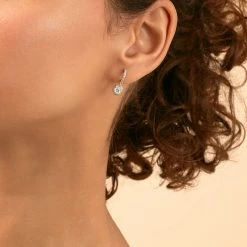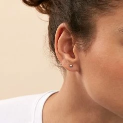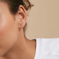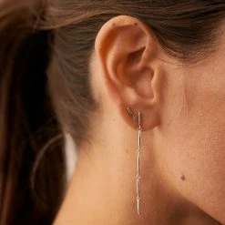 Boucles d’oreilles puces en argent véritable et dorées 750/1000, formées de petites barres pavées d’oxydes de zirconium
