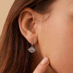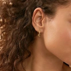 Boucles d’oreilles puces, en argent véritable doré 750/1000, dont le top est un cœur fait d’un fil torsadé auquel est suspendu un oxyde de zirconium en forme de coeur