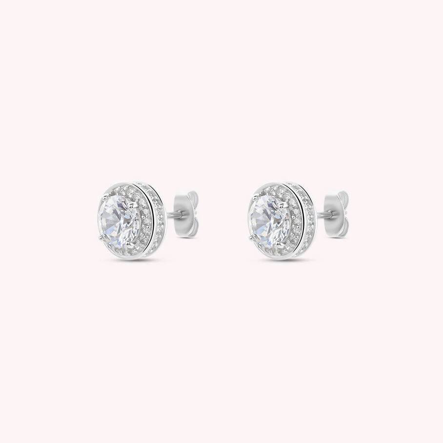 Boucles d’oreilles puces en argent véritable ornées d’un oxyde de zirconium XL rond, entouré de mini-oxydes de zirconium
