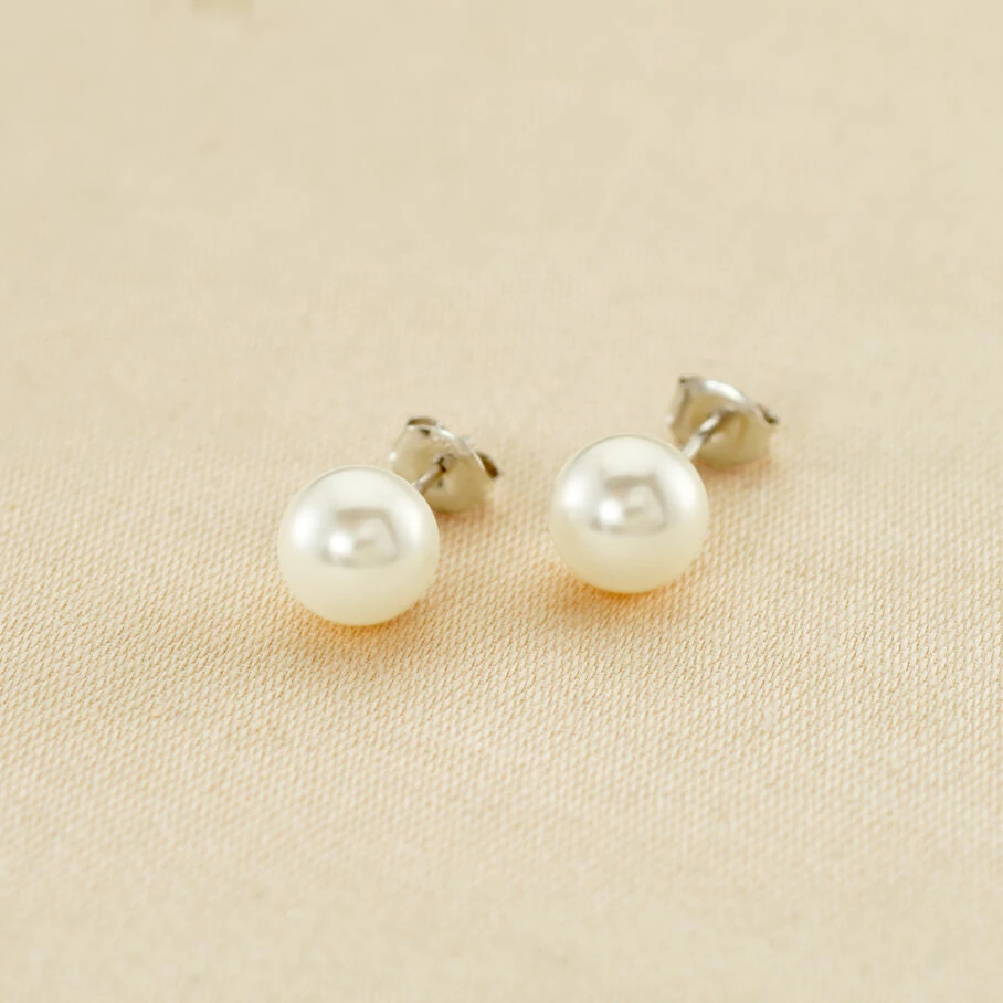 Boucles d’oreilles puces en argent véritable ornées de perles de verre de 8 mm de diamètre