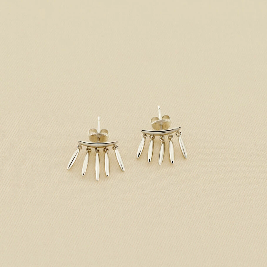Boucles d’oreilles puces, en argent véritable 925/1000, ornées d’un rideau de pampilles au motif rayon de soleil.