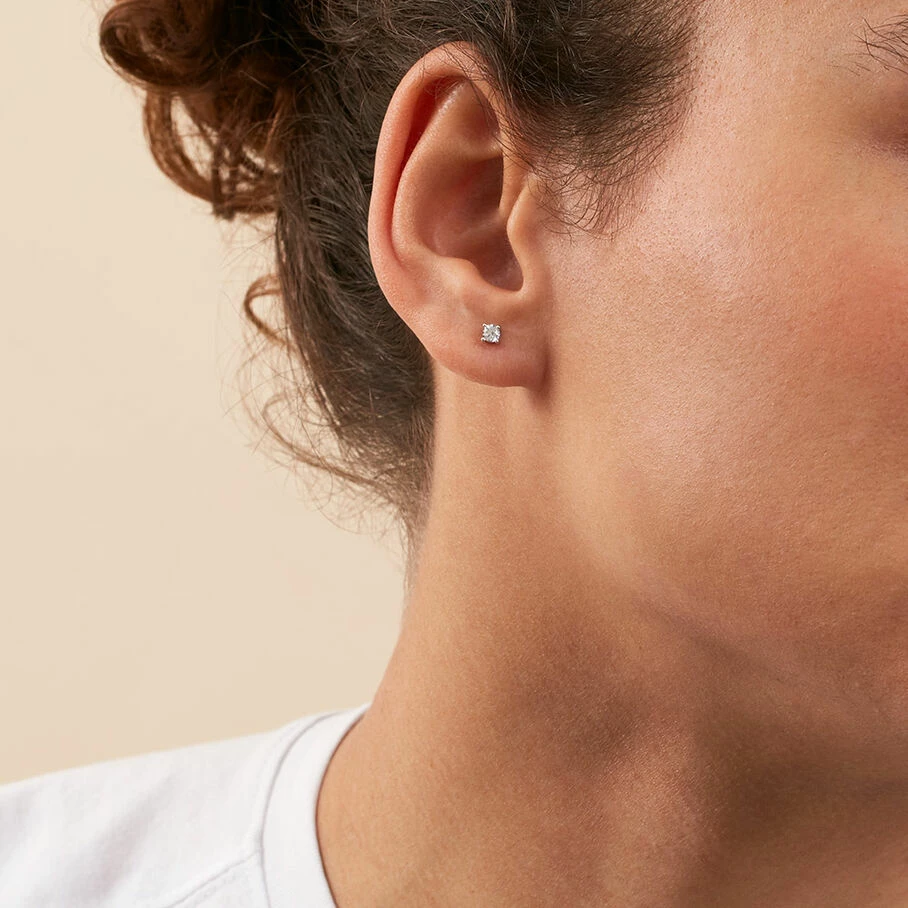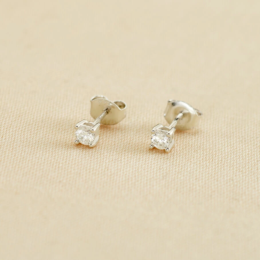 Boucles d’oreilles puces en argent véritable ornée d’oxydes de zirconium griffés de 3 mm