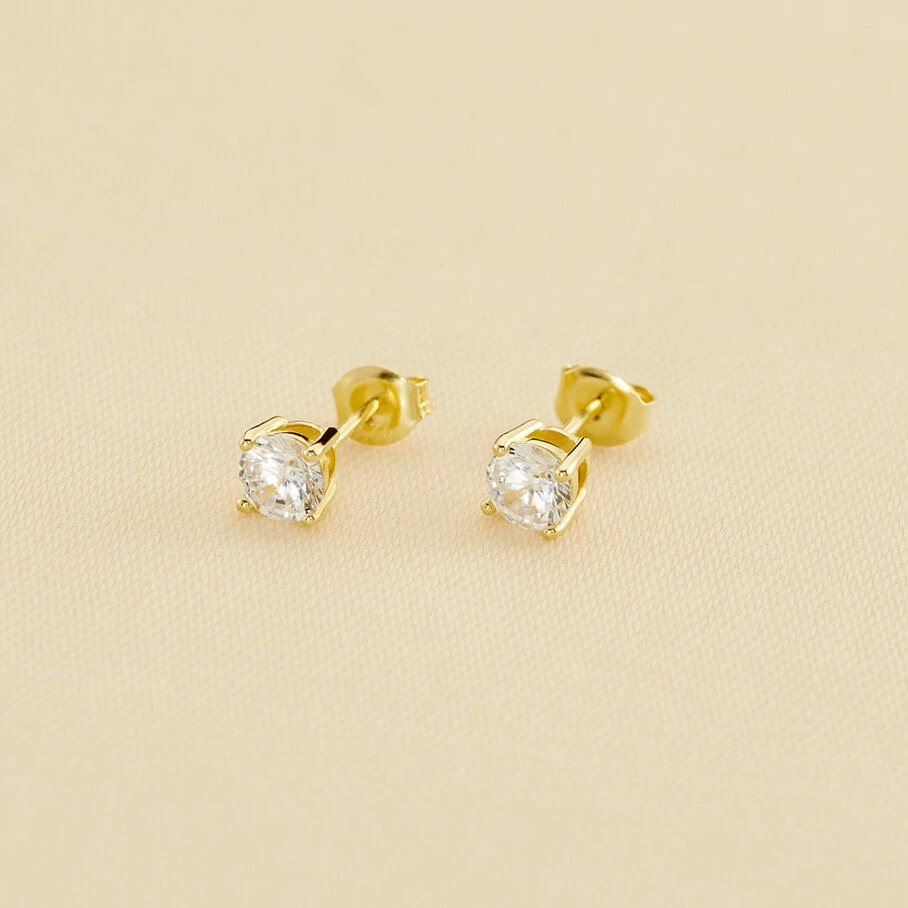 Boucles d’oreilles puces, en argent véritable dorées 750/1000, ornées d’oxydes de zirconium griffés de 5 mm