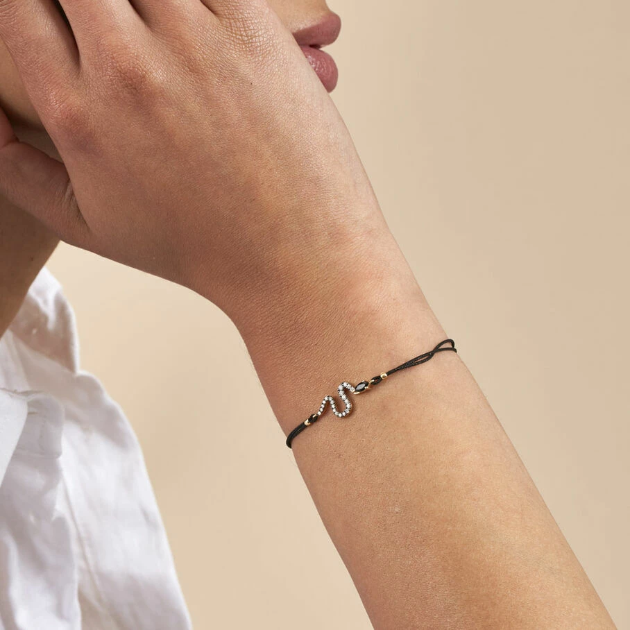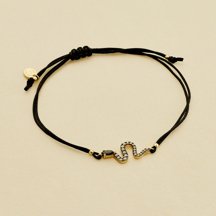 Bracelet cordon orné d’un serpent en argent véritable doré 750/1000 pavé d’oxydes de zirconium