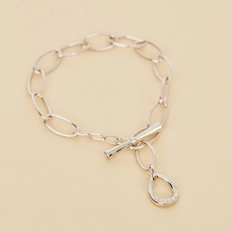 Bracelet souple, en laiton rhodié, composé de maillons ovales allongés