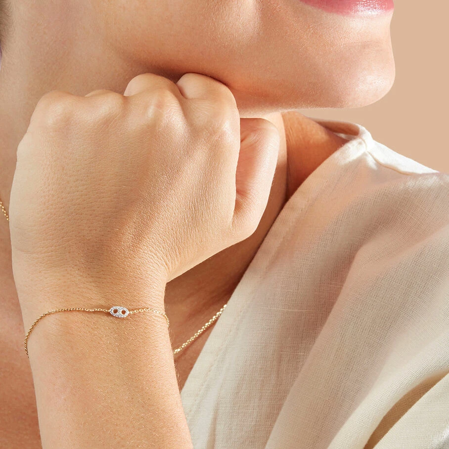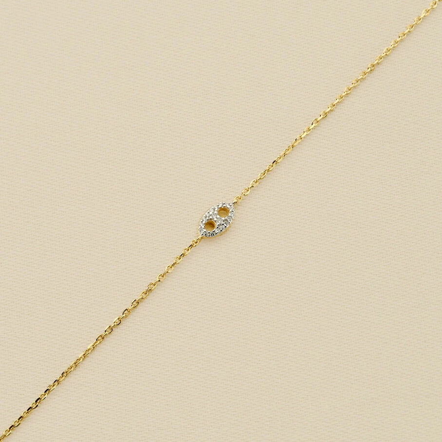 Bracelet, en argent véritable doré 750/1000, avec un grain de café pavé sur ruthénium, monté sur une fine chaine maille forçat