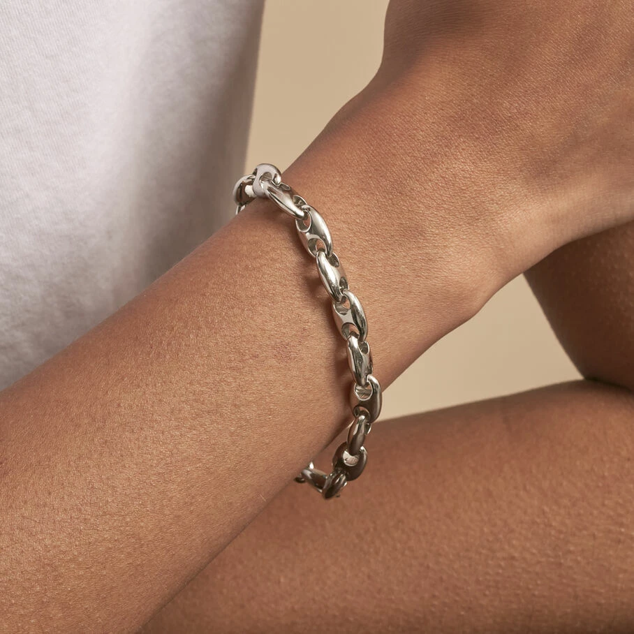 Bracelet souple en argent véritable, chaîne avec maillons en forme de grains de café.