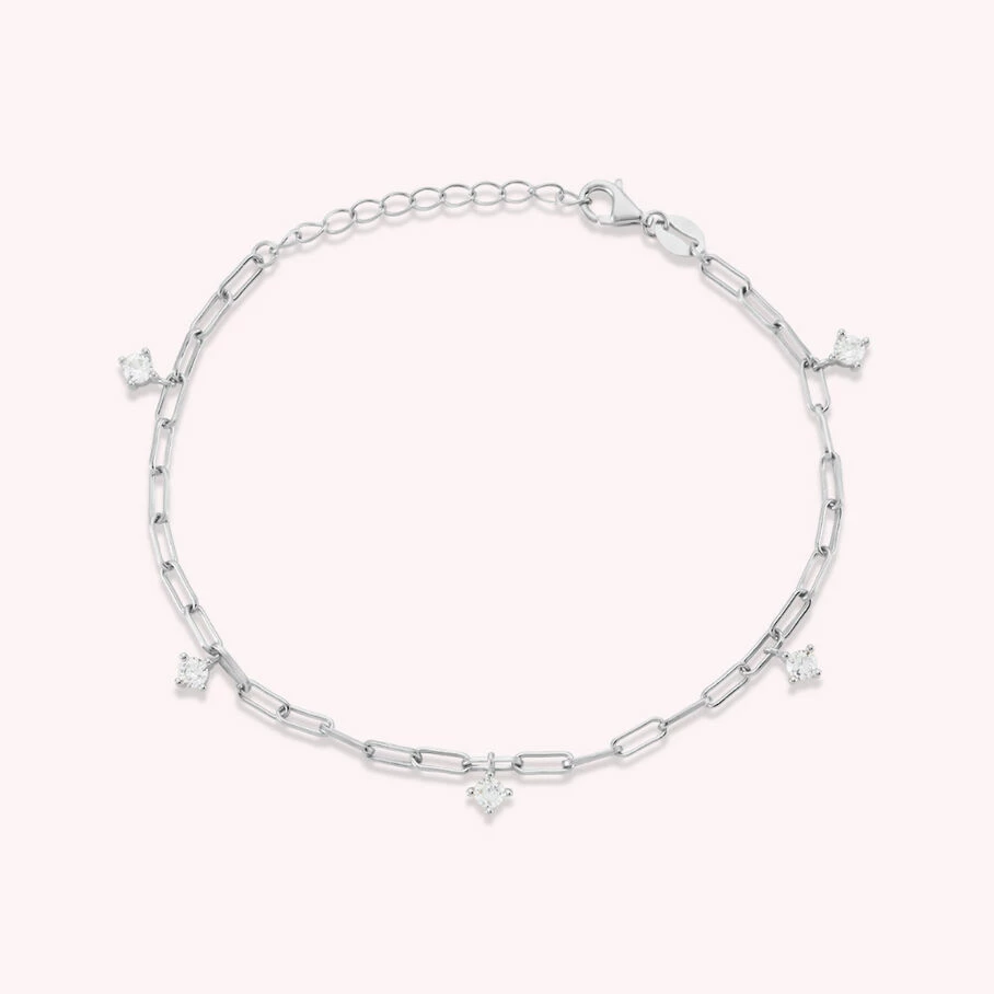 Bracelet, chaine rectangle et 5 oxydes de zirconium sertis griffes, en argent véritable
