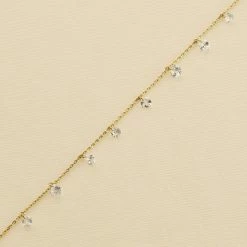 Bracelet fin, en argent véritable doré à l’or fin, avec des oxydes de zirconium percés, en pampille, en forme de poire, rond et coussin