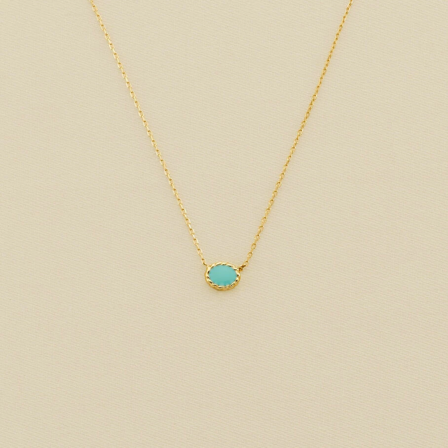 Collier court, en argent véritable 925/1000 et doré 750/1000, orné d’un pendentif monté d’une pierre fine d’un côté et émaillé de l’aute côté. La torsade, véritable signature de la marque, est apportée en touche notamment sur la bordure du pendentif! Un collier au double porté pour accorder à son humeur et à ses tenues!