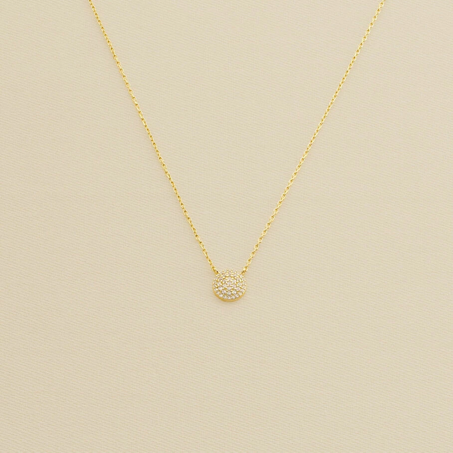 Collier court en argent véritable doré 750/1000, orné d’une pastille pavée d’oxydes de zirconium