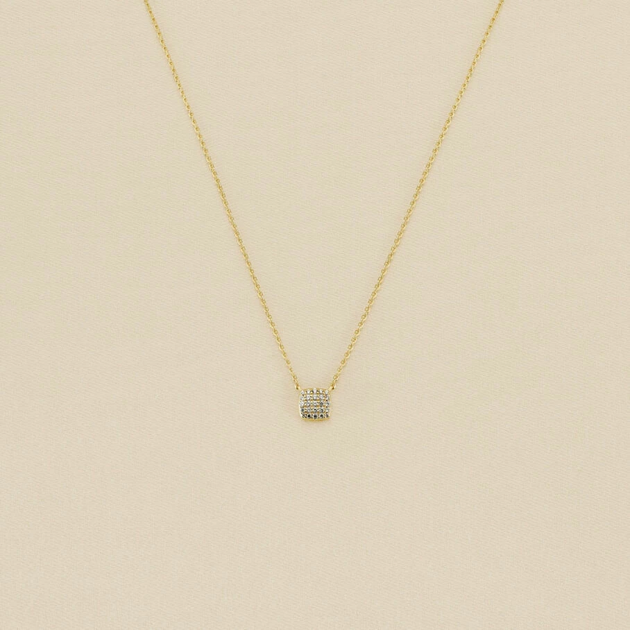 Collier court, en argent véritable doré 750/1000, avec un pendentif en forme de coussin serti d’oxydes de zirconium