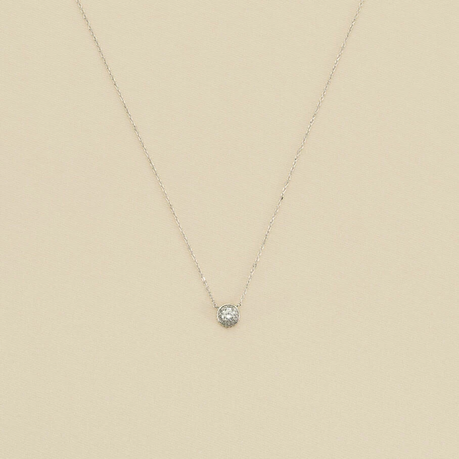 Collier court sur chaine, en argent véritable, avec un mini oxyde rond autour duquel sont micro sertis des oxydes de zirconium