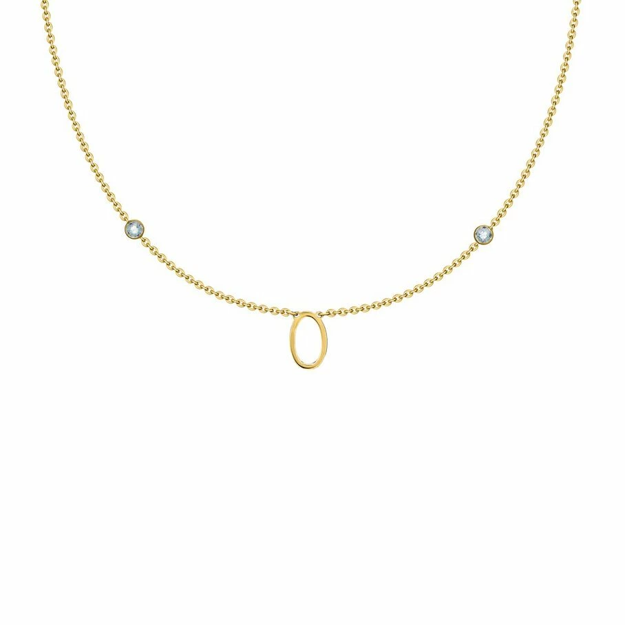 Collier fin composé de la lettre O et de deux oxydes de zirconium. Longueur: 42cm