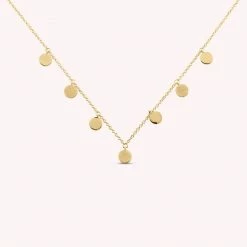 Collier court, en laiton doré 750/1000, fait de pastilles en pampille avec des finitions alternant entre un effet sablé brillant et un effet lisse