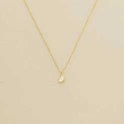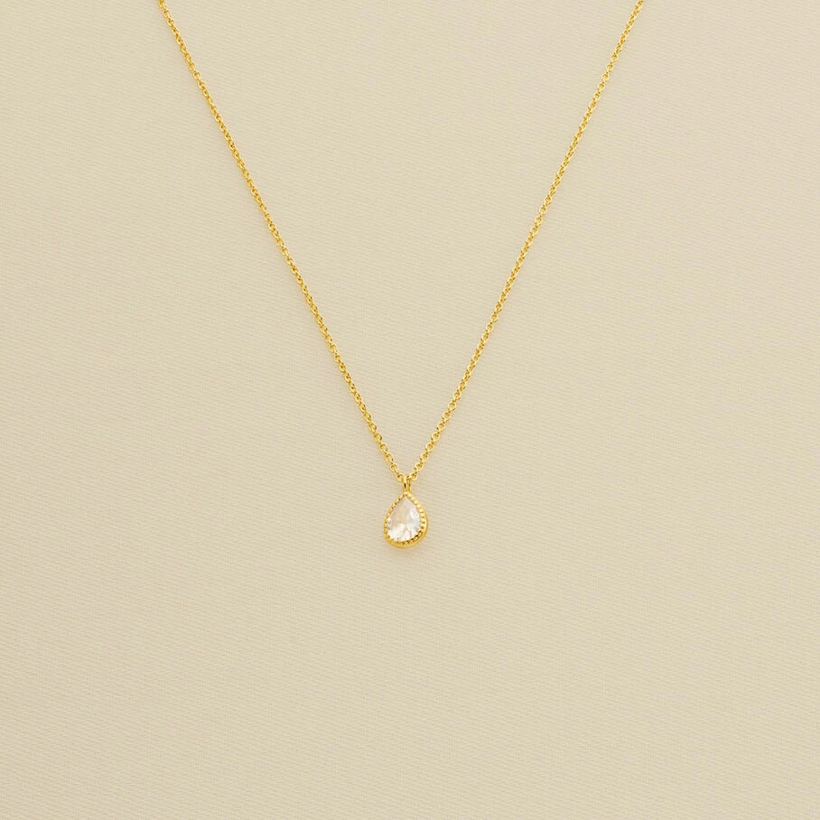 Collier court en laiton doré 750/1000, oxyde de zirconium goutte serti