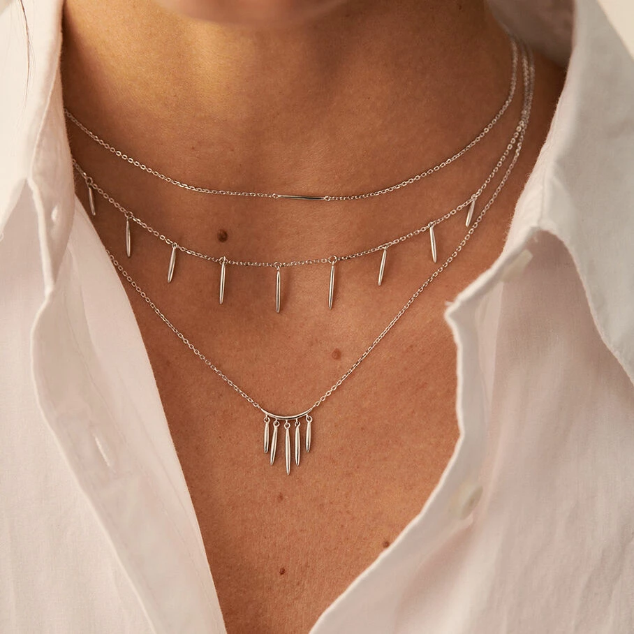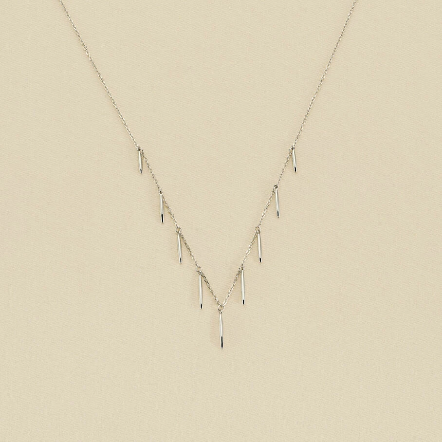 Collier chaine fine, en argent 925/1000, orné de pampilles rayonnantes en forme de rayons de soleil.