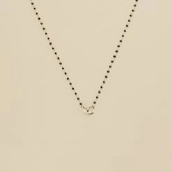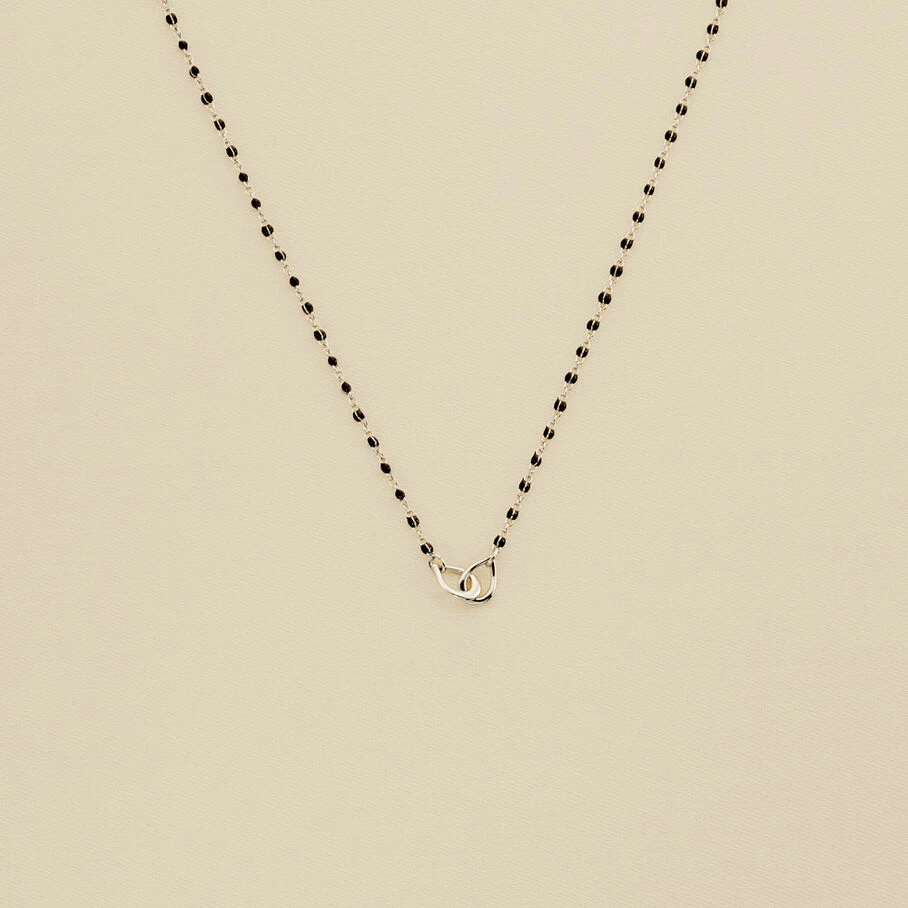 Collier court, laiton, perles d’émail sur chaîne et 2 anneaux gouttes entrelaçés
