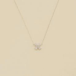 Collier court en argent véritable orné d’un trèfle à quatre feuilles pavé d’oxydes de zirconium