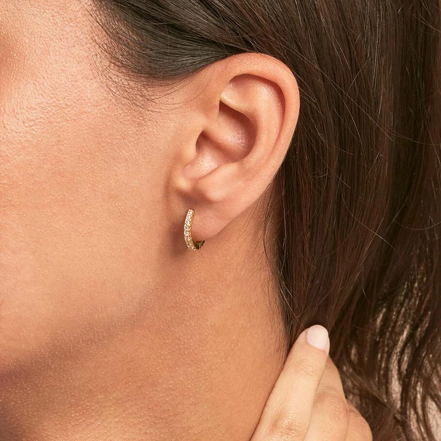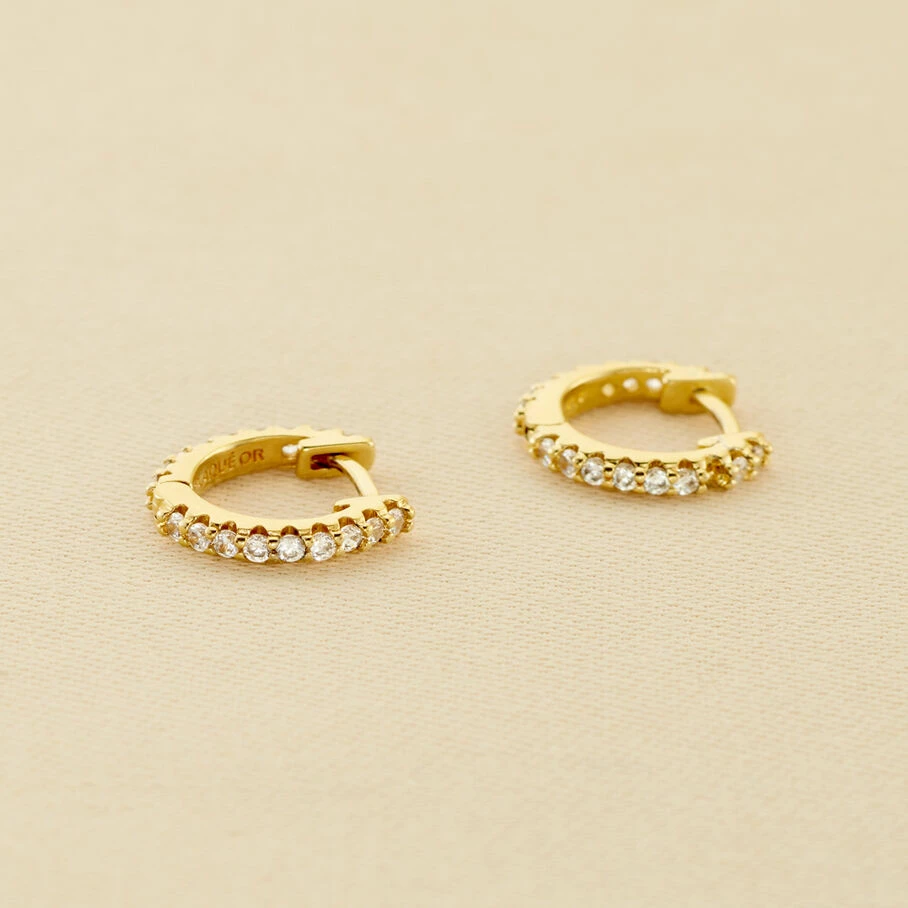 Boucles d’oreilles mini-créoles, en argent véritable dorées 750/1000, pavées d’oxydes de zirconium