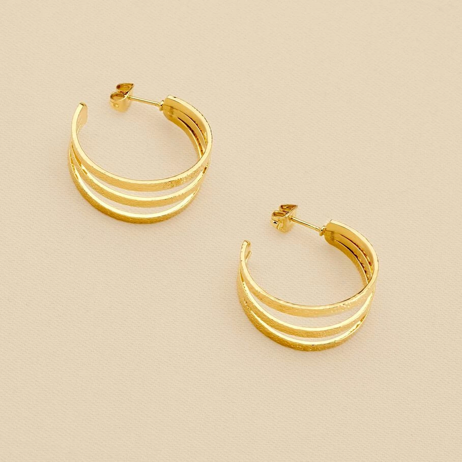 Créoles de 25mm de diamètre, en laiton doré 750/1000, faites de plusieurs fils plats texturés