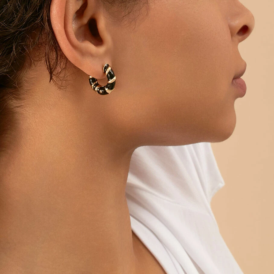 Créoles de 20mm, en laiton doré, fil épais torsadé avec de l’émail