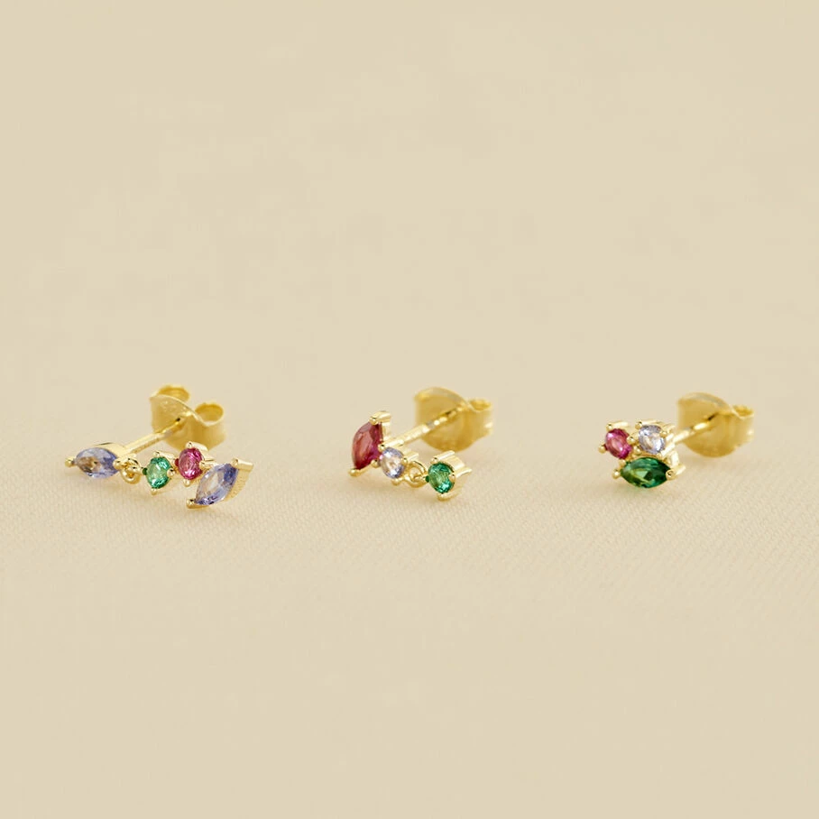 Set de 3 boucles d’oreilles, en argent doré 750/1000, amas d’oxydes de zirconium de différentes formes