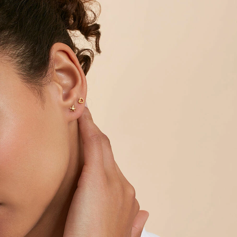 Boucle d’oreille puce en argent véritable doré 750/1000 en forme de coeur évidé. A l’unité, pour mieux les mixer et les accumuler.