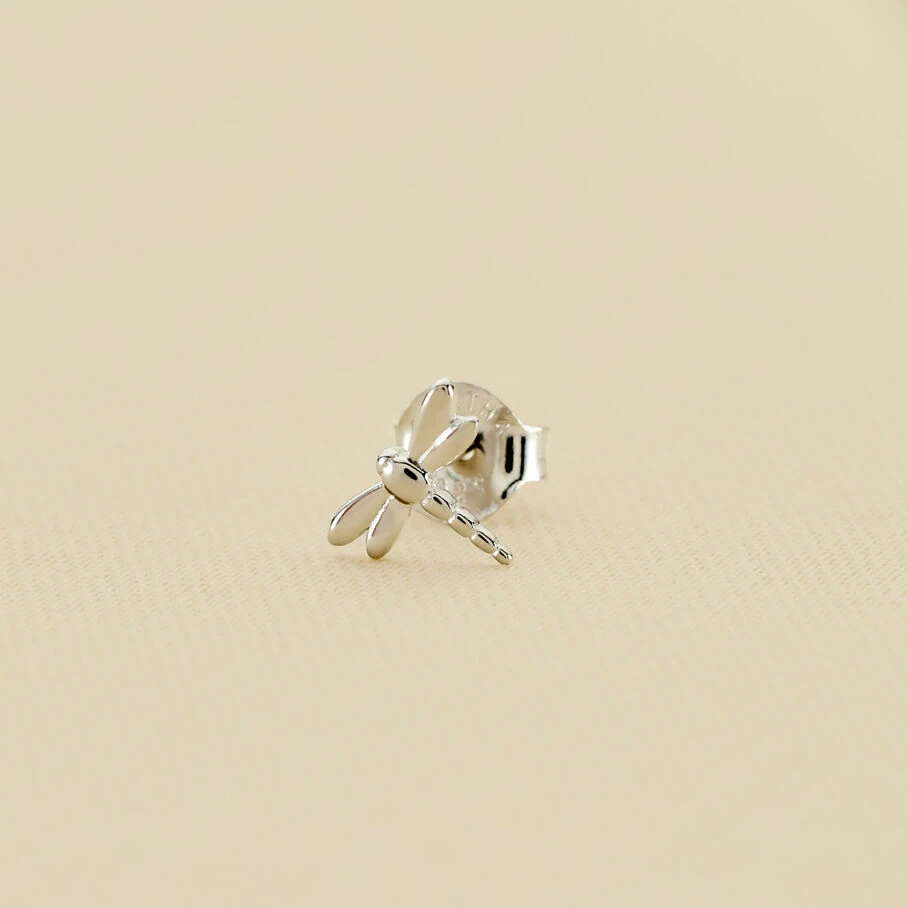 Boucle d’oreille puce en argent véritable en forme de libellule. A l’unité, pour mieux les mixer et les accumuler.