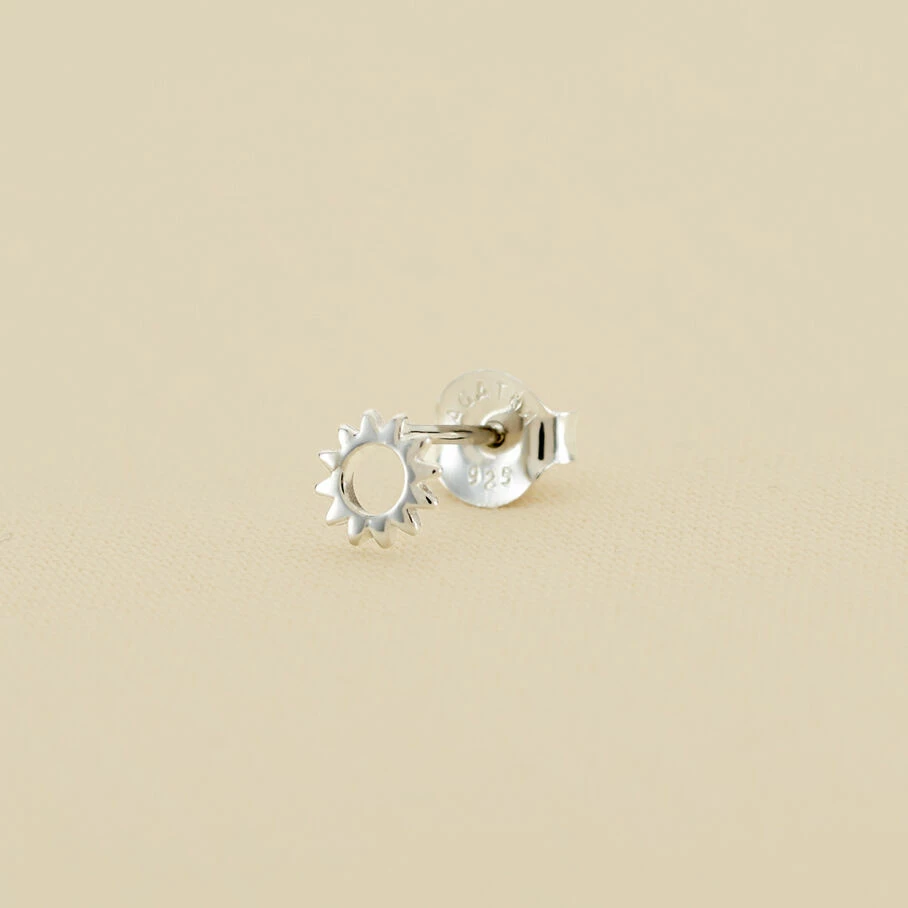 Boucle d’oreille puce en argent véritable motif soleil. A l’unité, pour mieux les mixer et les accumuler.