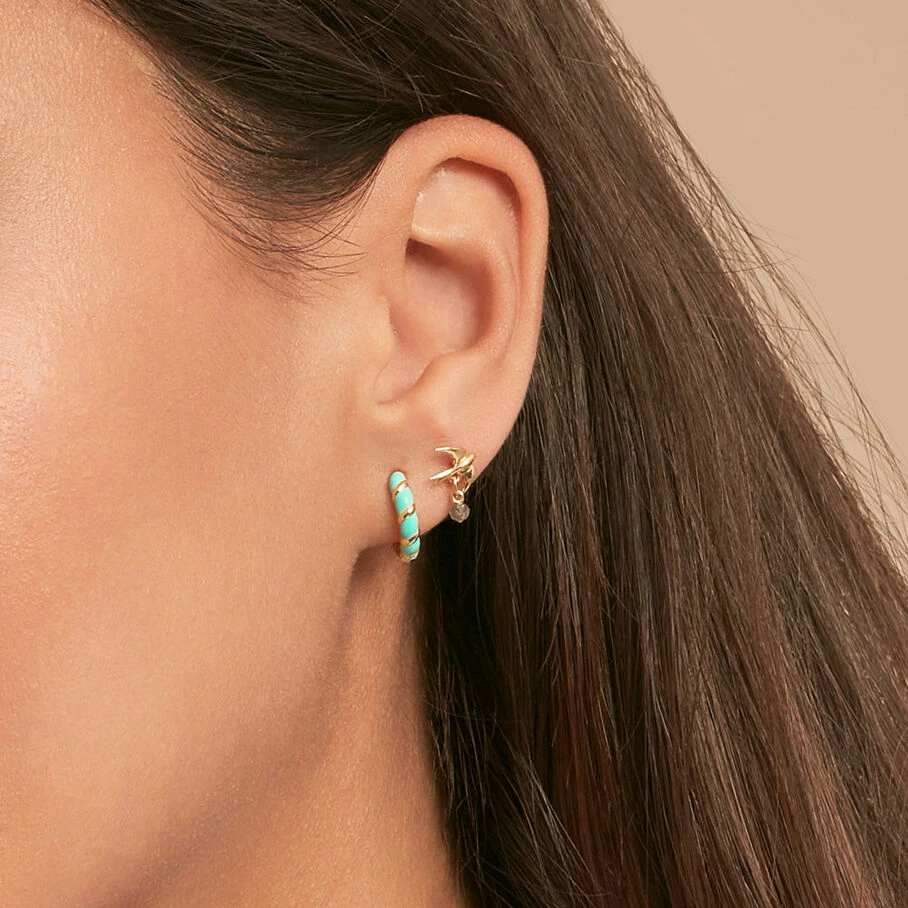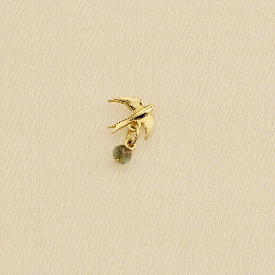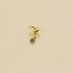 Boucle d’oreille puce à l’unité, en argent 925/1000 et dorée 750/1000, représentant une hirondelle. En dessous vous observerez une pampille de deux perles de pières naturelles.