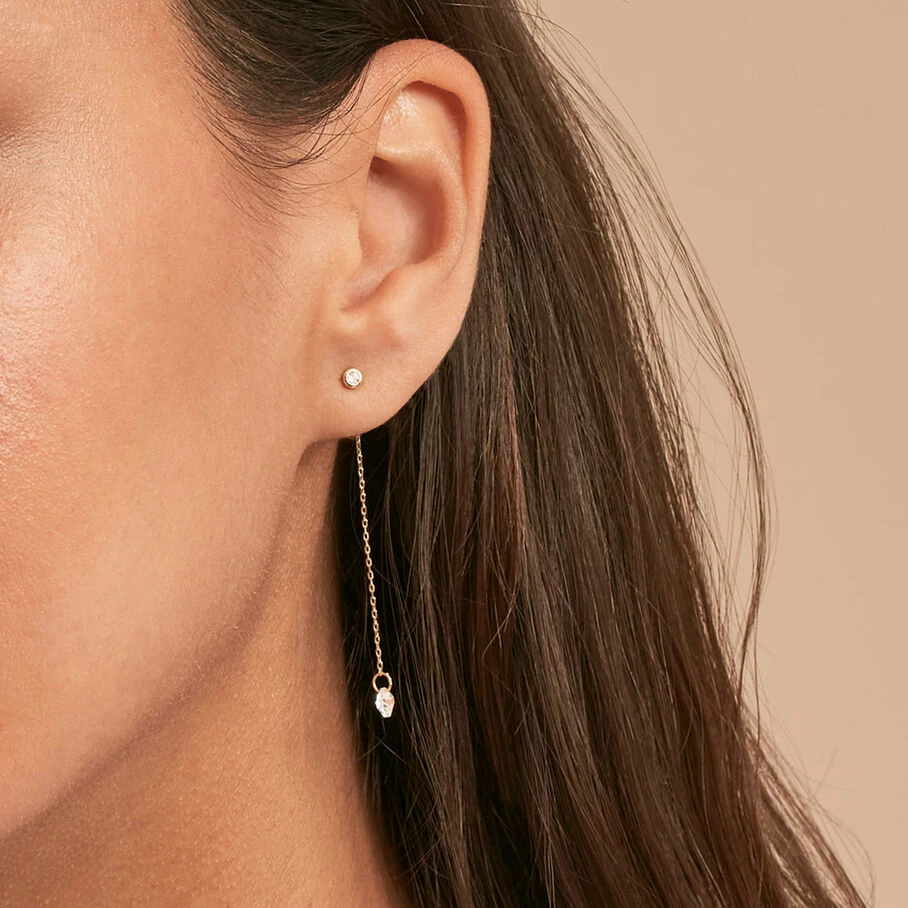 Boucle d’oreille puce boule et chaine accrochée au papillon avec un oxyde de zirconium en forme de coussin percé au bout de la chaine, en argent véritable doré 750/1000. A l’unité pour mieux les mixer et les accumuler