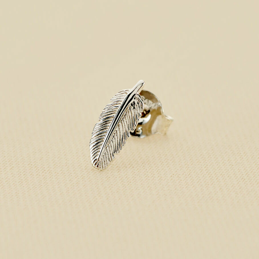 Boucle d’oreille puce en argent véritable en forme de plume. A l’unité, pour mieux les mixer et les accumuler.
