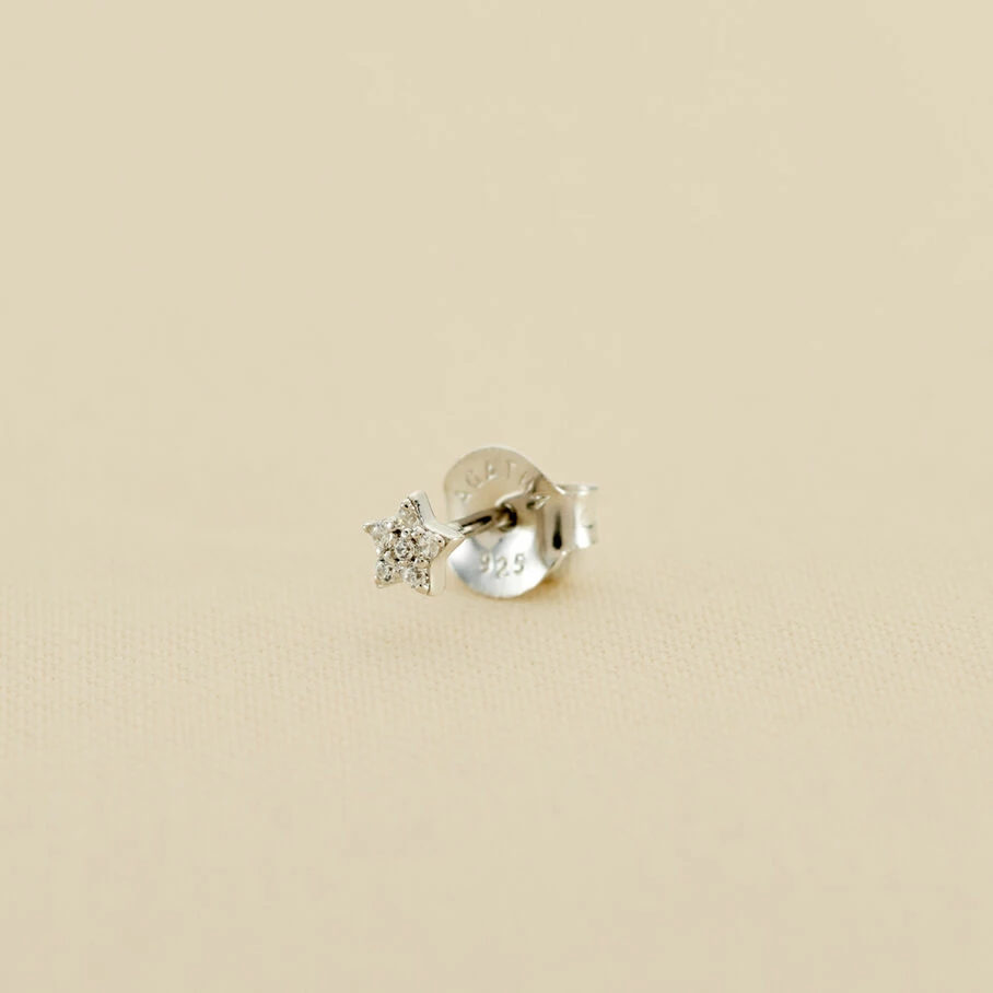 Boucle d’oreille puce, étoile pavée d’oxydes de zirconium, en argent véritable. Vendu à l’unité pour mieux les mixer.