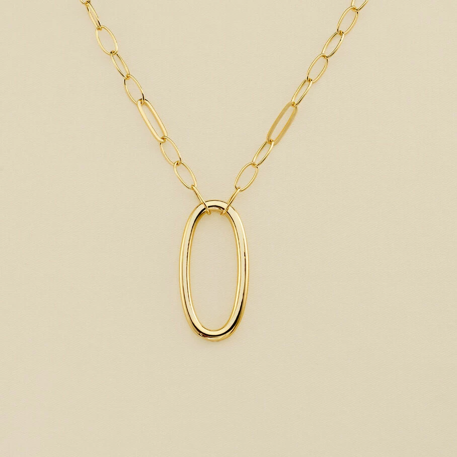 Sautoir, en laiton doré 750/1000, fait de maillons ovales allongés et dont l’un XL se porte en pendentif