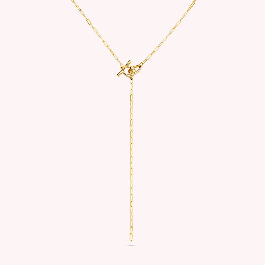 Collier Y, en argent véritable doré à l’or fin, fait de maille dont le fermoir représente deux gouttes entrelacées et serties d’oxydes de zirconium sur la tranche extérieure